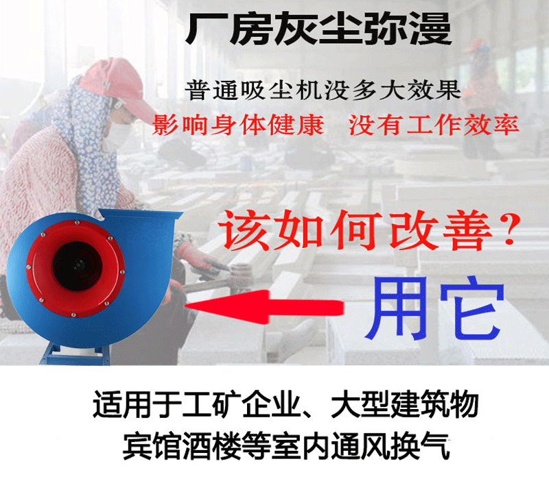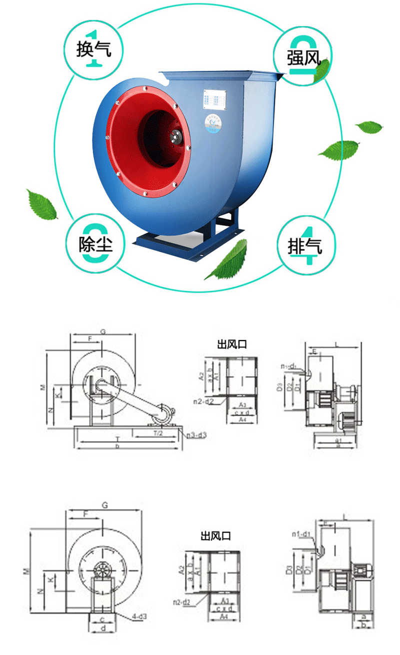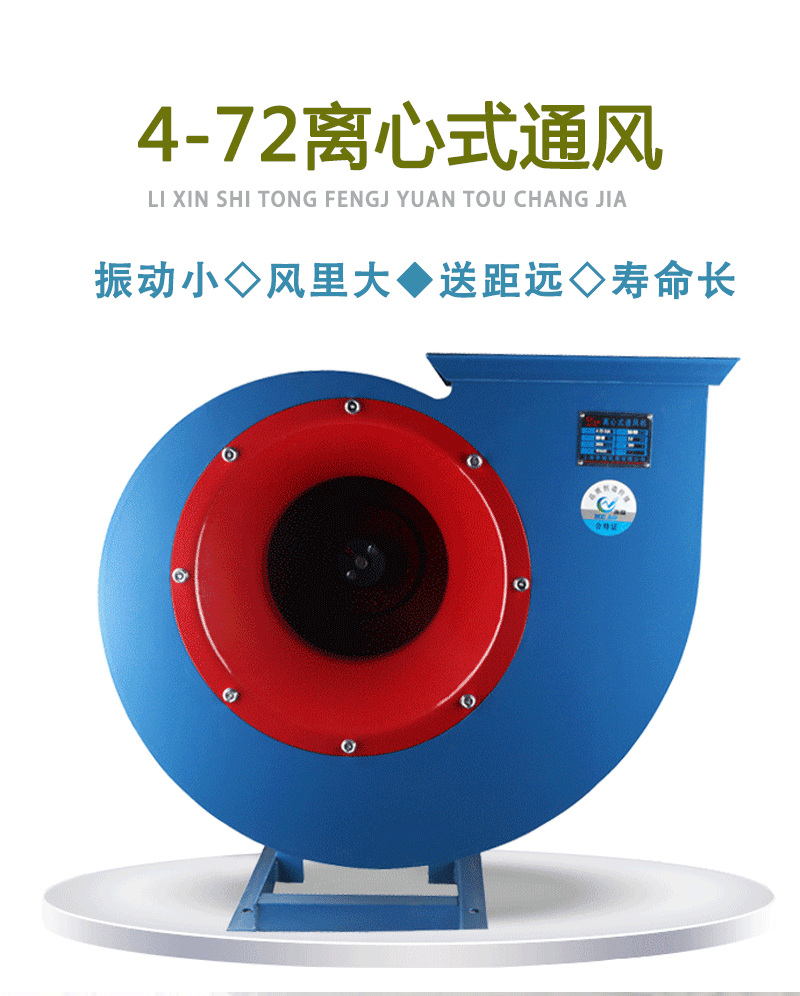 4-72型離心式通風機可輸送空氣和其他不自燃的、對人體無害的、對鋼材無腐蝕性的氣體。氣體內不允許有粘性物質,所含塵土及硬質顆粒物不大于150mg/立方。氣體溫度不得超過80°C。該風機具有良好的氣動性能、運轉平衡、振動小、效率高、壽命長等特點。廣泛適用于工礦企業、大型建筑物、賓館酒樓等室內通氣換氣。B4-72型防爆型離心式通風機、主要有鋁葉輪、機殼、進風口等部分與防暴電機組成、可作為易燃揮發性氣體的通風換氣只用、其性能和安裝尺寸同于4-72型。F4-72型為防腐型離心式通風機,主要用不銹鋼(或玻璃鋼)材質制成的葉輪、機殼、進風口等部分與電機組成,可用于輸送腐蝕性氣體,其性能與安裝尺寸同于4-72型。